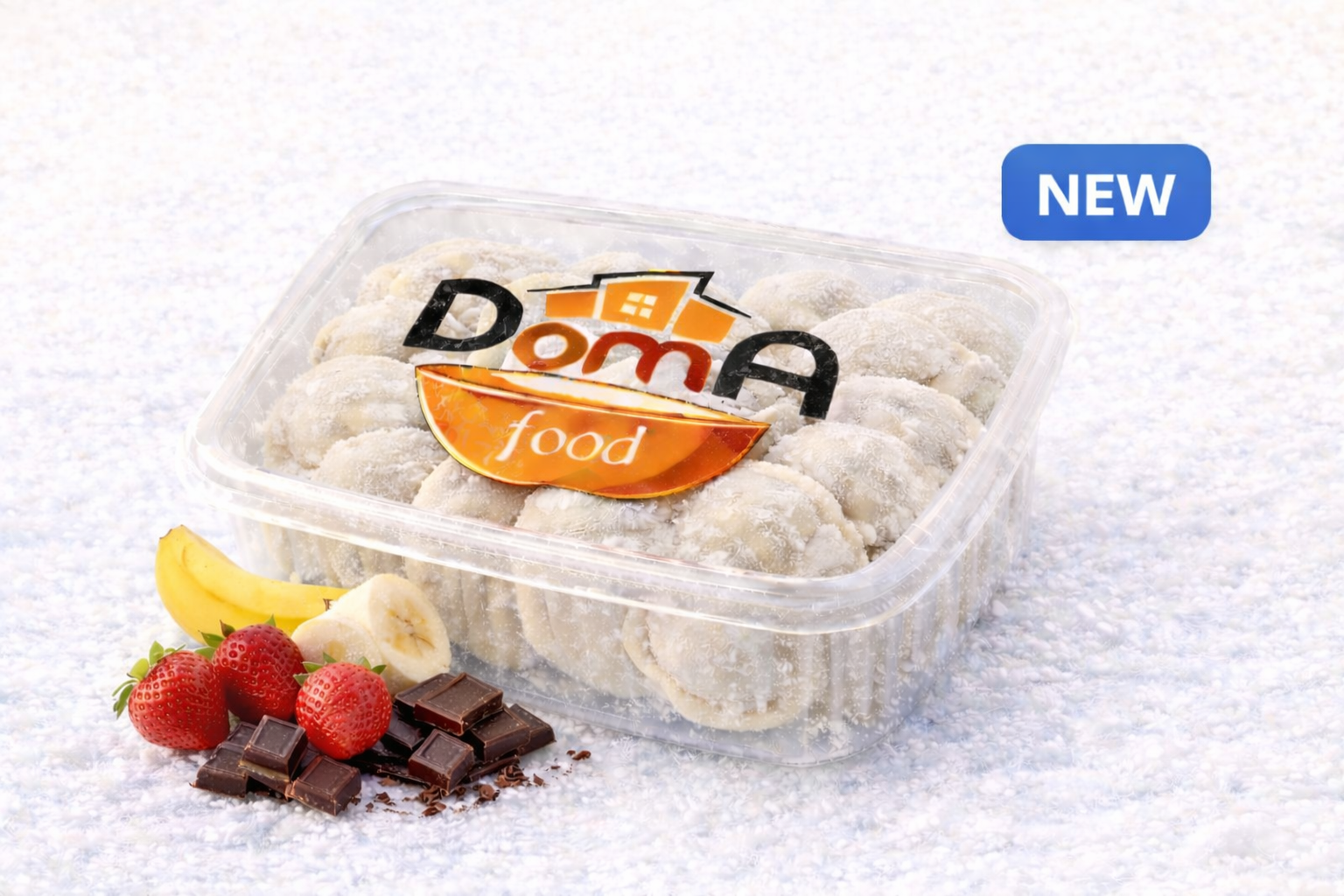 Вареники с клубникой бананом и шоколадом. ורניקס במילוי תות בננה ושוקולד.